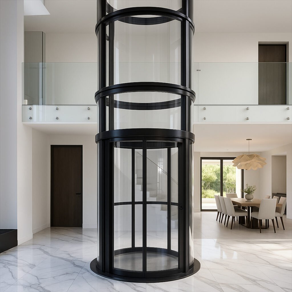 - Model Type: Circular Elevator – full polycarbonate round structure with a sleek powder-coated metal finish for a modern look and corrosion resistance.